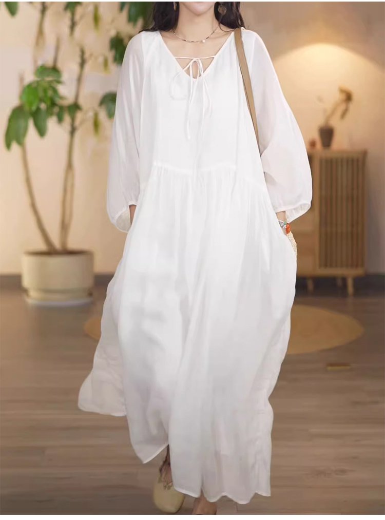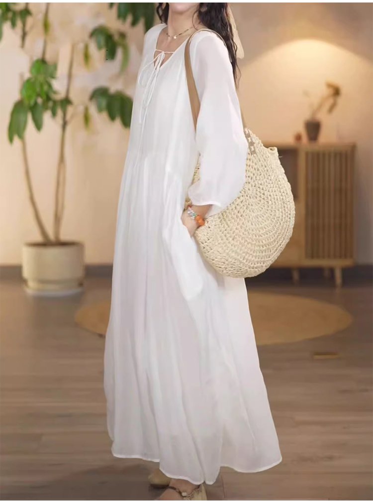綿麻ロングワンピース